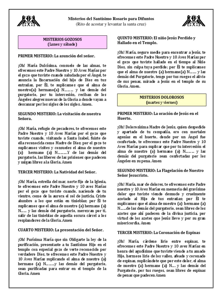 2 MISTERIOS GOZOSOS LUNES Y SABADOS. It contains the mysteries of each day as well as the initial and. Santo rosario para difuntos pdf para imprimir.